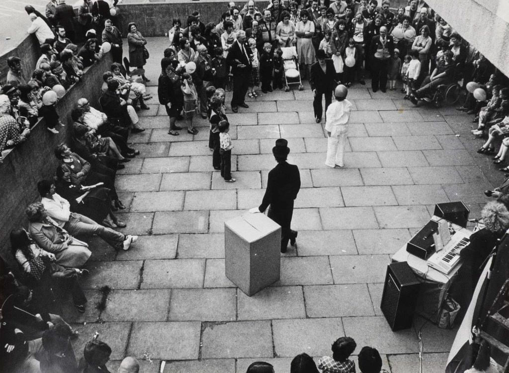 The Diggers Theatre Company’s performance of Welcome to the New Jerusalem is taking place outside the Oakengates Theatre just before the arrival of the People’s March for Jobs. In the play, several real life experiences are re-told. Like the man who has to commute to Smethwick for work: ‘We had to say goodbye to Telford because we couldn’t keep the car on the road’. Or the teenager frustrated by the Work Experience Programmes: ‘All I want is a proper Job!’.