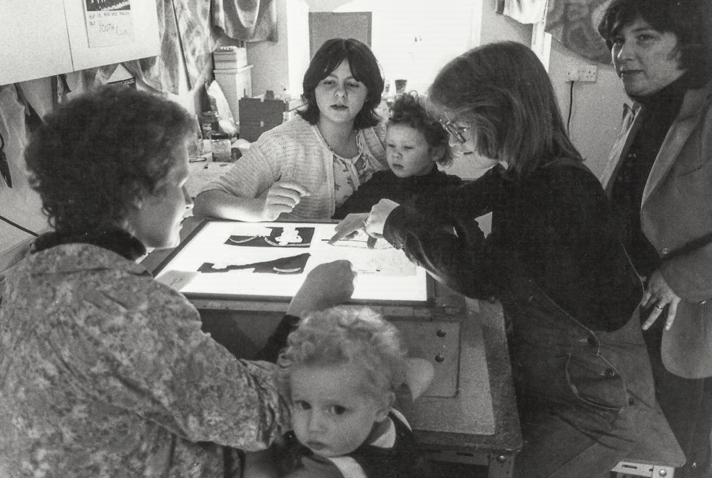 This book and its sequel, My Mum Drives a Bus, were both devised and printed by the Malinslee Book Group. ‘We decided to do a children’s book that was a realistic picture of life today, such as collecting family allowance and picking up the older children from school. The father of the family works as a car mechanic. That’s why he’s not there in the morning but can bathe the children at night’.